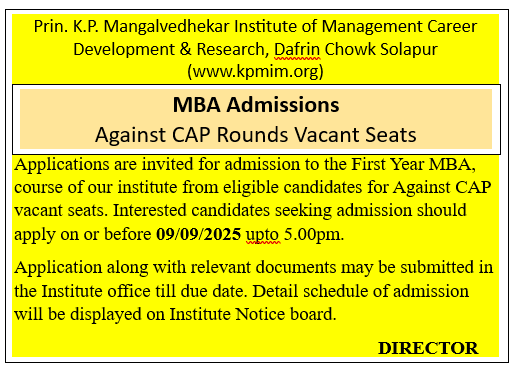 156-B, Railway lines, Dufferin Chowk, Solapur, Maharashtra-413001, Bharat :: Email Id - info@kpmim.org :: Phone - 02172317964 , 02172310029
