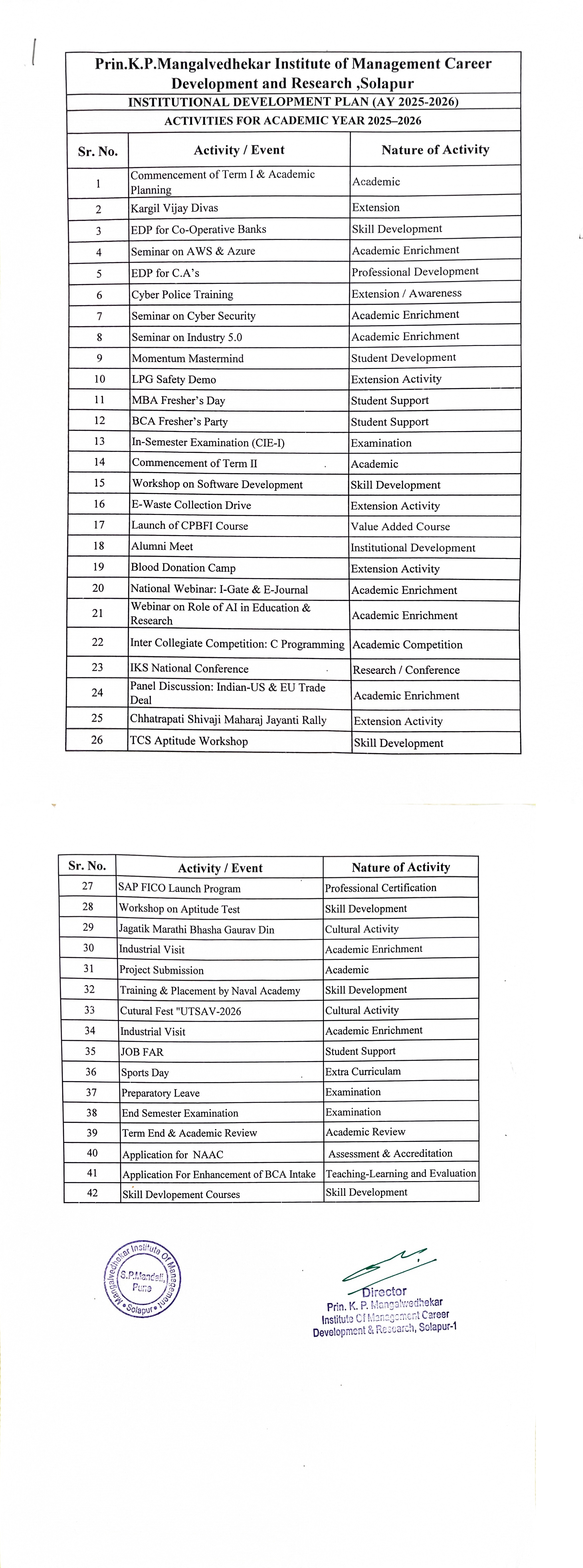 | 6 | ACTIVITIES FOR ACADEMIC YEAR 2025-2026 | View |